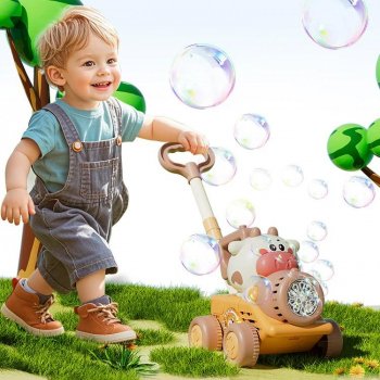 Handheld Cartoon Bubble Blower Machine with Lights & Trolley for Kids