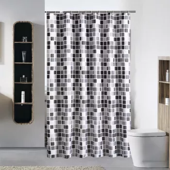 Black Geometric Mosaic Waterproof Shower Curtain with Hooks