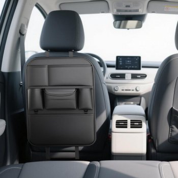 Leather Car Seat Back Organizer with Cup Holder, Tissue Holder, and Storage Pockets