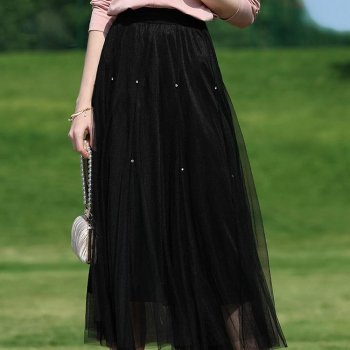 Elegant High Waist Mesh A-Line Midi Skirt for Spring & Summer