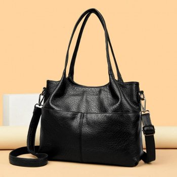 High Capacity Soft PU Leather Tote Bag with Front Double Pockets for Women