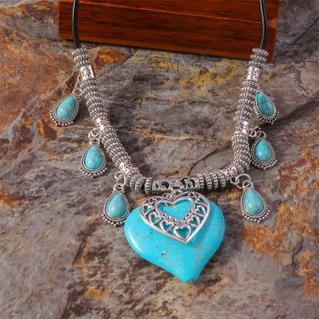 Bohemian Turquoise Heart Pendant Necklace for Women and Girls