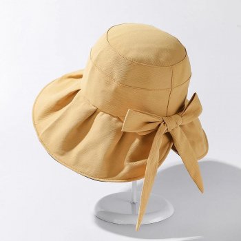 Women’s Foldable Summer Sun Hat with Bow – Wide Brim Solid Color Sunshade Hat