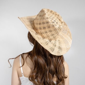 Wide Brim Raffia Straw Fedora Hat with Chin Strap – Breathable Summer Sun Protection