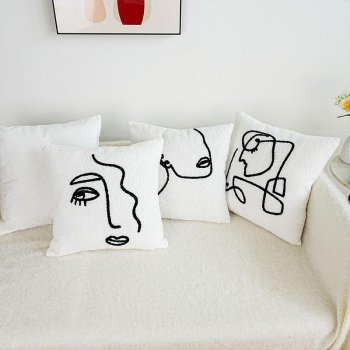 Teddy Velvet Abstract Face Embroidered Pillow Cover – Soft Decorative Cushion