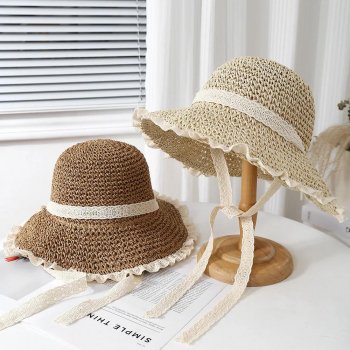Women’s Foldable Summer Bucket Hat – Breathable Hollow Sun Hat with Windproof Rope
