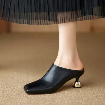Women’s Square Toe Leather Mules – Summer High Heel Sheepskin Slippers