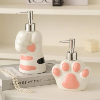 Cute Cat Claw Soap Dispenser Ceramic Hand Wash Bottle & Toothbrush Holder