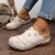 Crafted with a fashionable closed-toe design and adorned with elegant pearl details, these casual sandals strike the perfect balance between trendy and timeless. The lightweight platform sole and medium wedge heel (1.2″–2″) provide a subtle lift, improving posture while keeping you steady and supported throughout your day.
